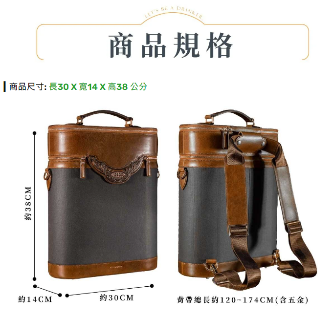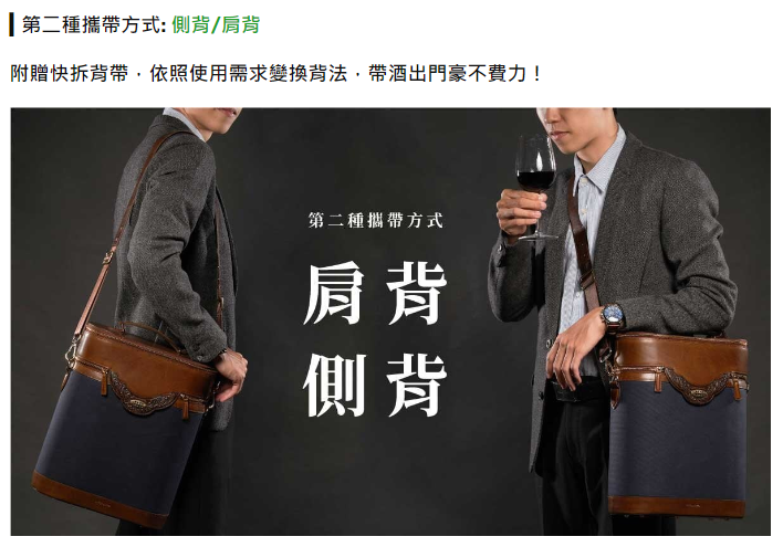 「Drinker醉客包」是一款品飲職人專用的質感餐酒袋,最多可同時攜帶三支酒,不裝酒時也能提供您日常使用,結合酒桶包型X移動式隔板X直立式收納功能,讓您攜帶酒與酒杯出門時更加方便,打造隨時隨地品飲的新體驗!